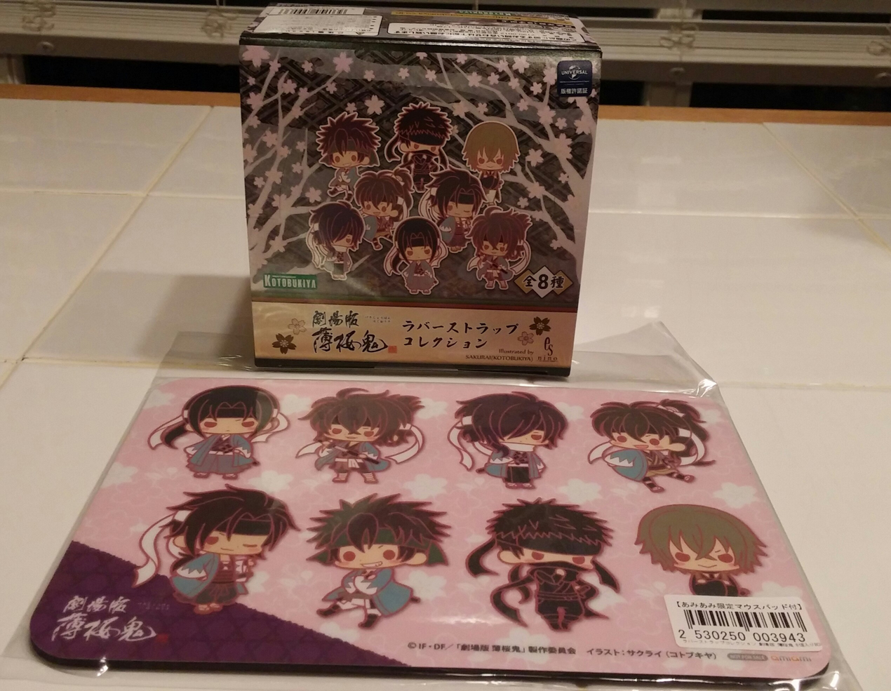 Here we have the Hakuoki rubber strap set by Kotobukiya. This set came with a bonus mouse pad featuring the designs the straps are based on. I really dig the style they’re in, so I couldn’t resist ordering them!