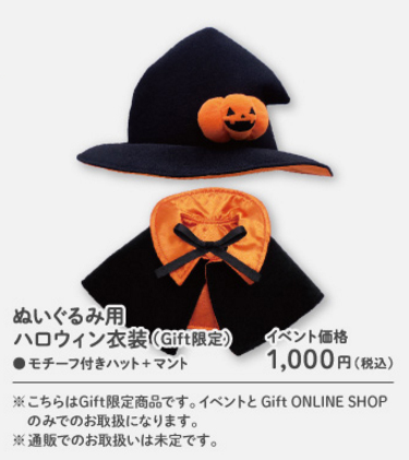 Along with the all the plushies that will be up for sale, you can opt to buy the Halloween plush clothes and the Straw Hat for your plushies! I really wish Gift would just open up orders for all sorts of clothing and hats for their plushies on their webshop! Whenever they do sell those at certain events, they’re really well done and cute! I’m just not crafty enough to make my own for all my plushies. The Halloween plush clothes will be priced at 1,000 yen and the Straw Hat will be priced at 1,200 yen.
